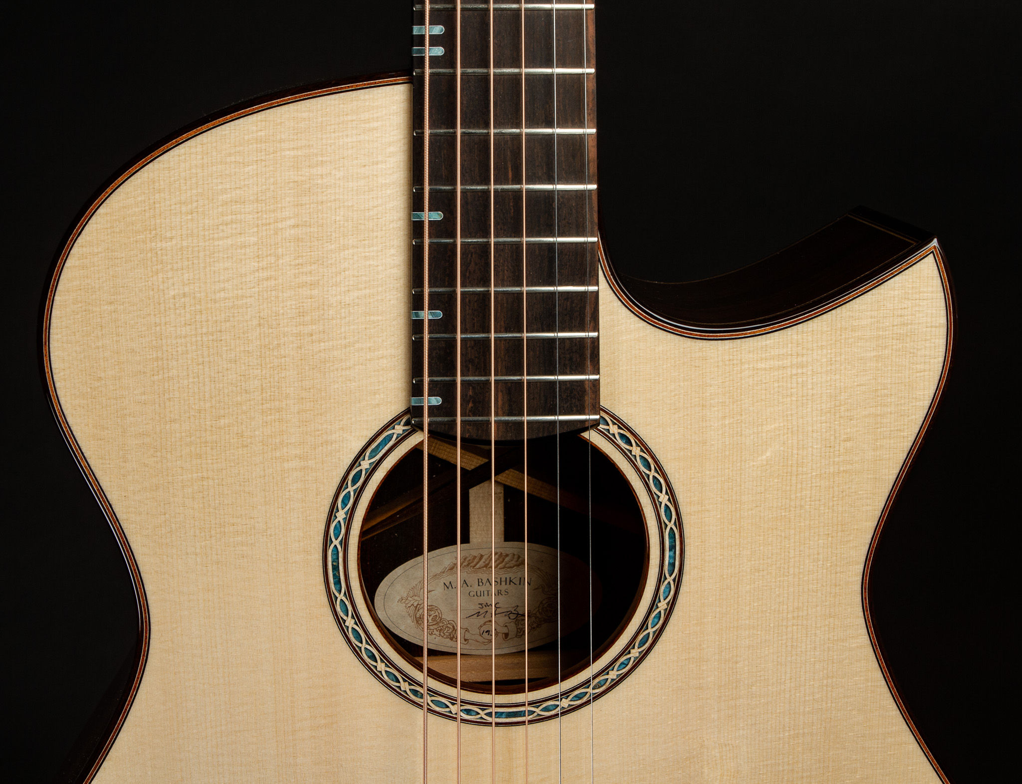 Bashkin JM model guitar with wood lace inlays