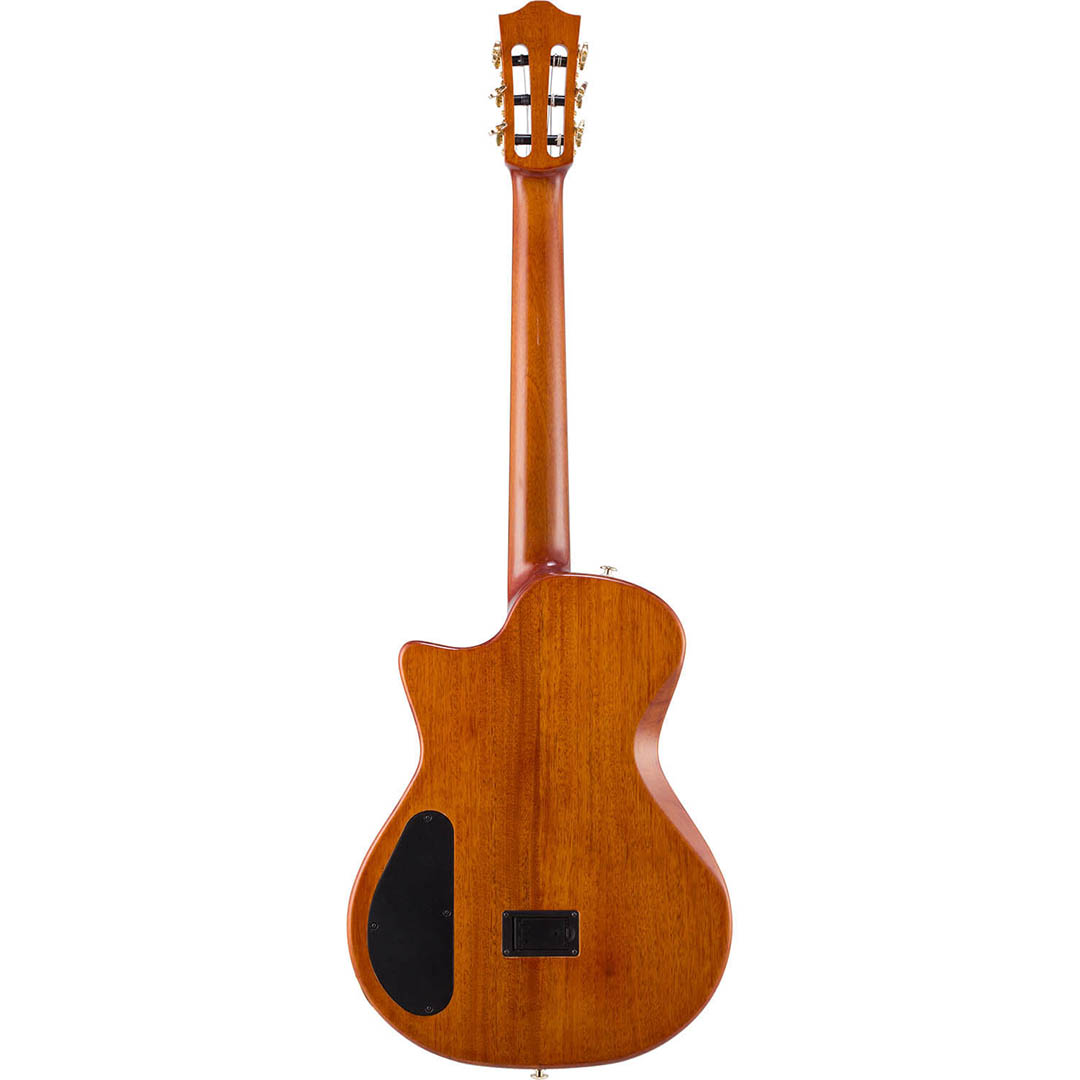 5Aフレイムオクメベニアとスプルーストップの組み合わせ、さらに軽量化を実現したマホガニーフルホロウボディが生み出す豊かな共鳴は、音楽的な表現を一層広げます。独自開発の「トーンフローブレーシング」は、バランスの取れた美しい音色を実現し、ピエゾピックアップとトランスデューサーを組み合わせたハイブリッドピックアップシステムによって、幅広い音作りが可能となります。どのような音楽ジャンルにも対応できる理想的なモデルです。