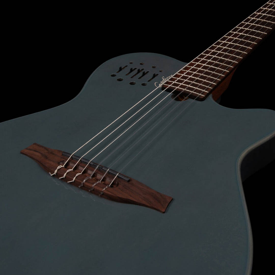 Multiac Mundialは、長年にわたる研究と革新の集大成として生み出された、ステージパフォーマンスや旅行に最適なギターです。超軽量のダブルチェンバードシルバーリーフメイプルボディとソリッドシダートップ、そしてスパニッシュシダーネックの組み合わせが、このギターに卓越した音響性能をもたらします。Godin Double Source Customプリアンプと複合的なピックアップシステムにより、ナチュラルなナイロンサウンドと幅広い音色の調整が可能です。