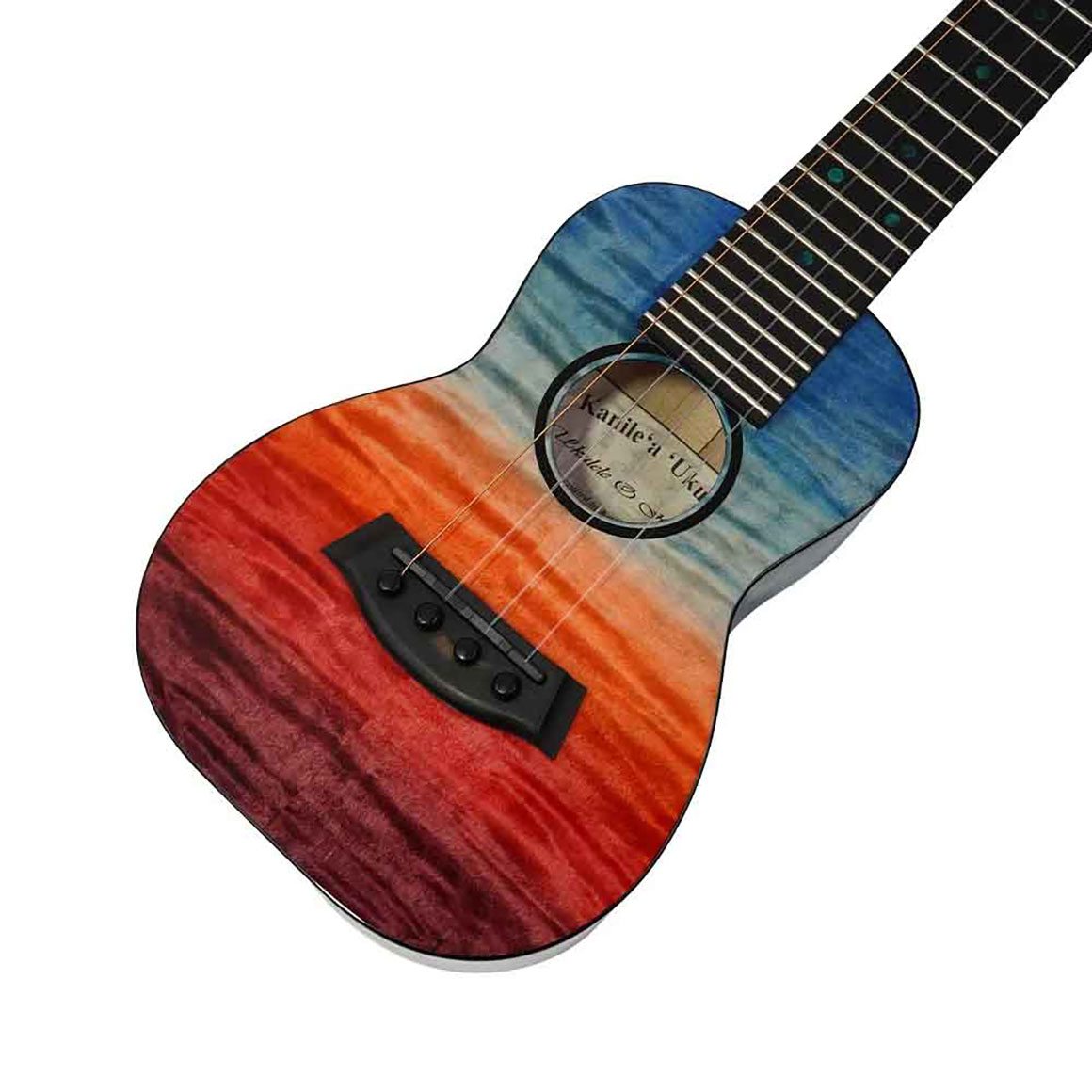ハワイ語で「地平線」を意味するIlikaiモデルはハワイの美しい夕焼けの空にインスピレーションを得ています。明るい赤から深い青のグラデーションが鮮やかなボディはマスターグレードのフレイムドメイプルにステイン塗装を施し、ボディにブランドロゴとポジションマークには海の色調に着色されたポプラを採用しています。