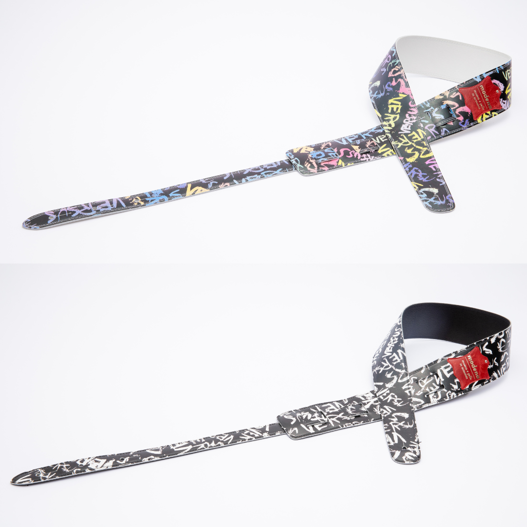 大胆なペイントレザーが目を惹くロックなレザーストラップ。 モダンでストリートなルックスはステージ映えすること間違いなし。 シューズとのリンクコーデも抜群のインパクトを放ちます。