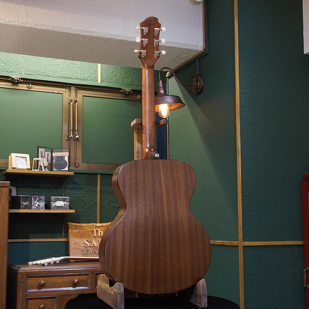ボディー・トップは板材の時に真空状態で熱を加えることで余分な水分やミ ネラルを取り除いたソリッド・スプルースを使用し、サイドとバックにはサペリを用いて狂いの出にくい安定した ボディー剛性を実現しました。