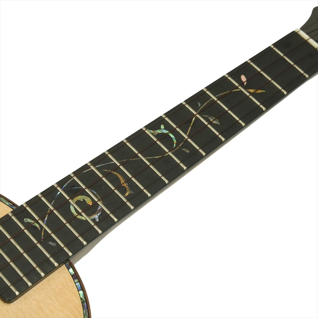ボディトップには、粒立ちが良く力強いレスポンスを誇る「極上シトカスプルース」を採用。